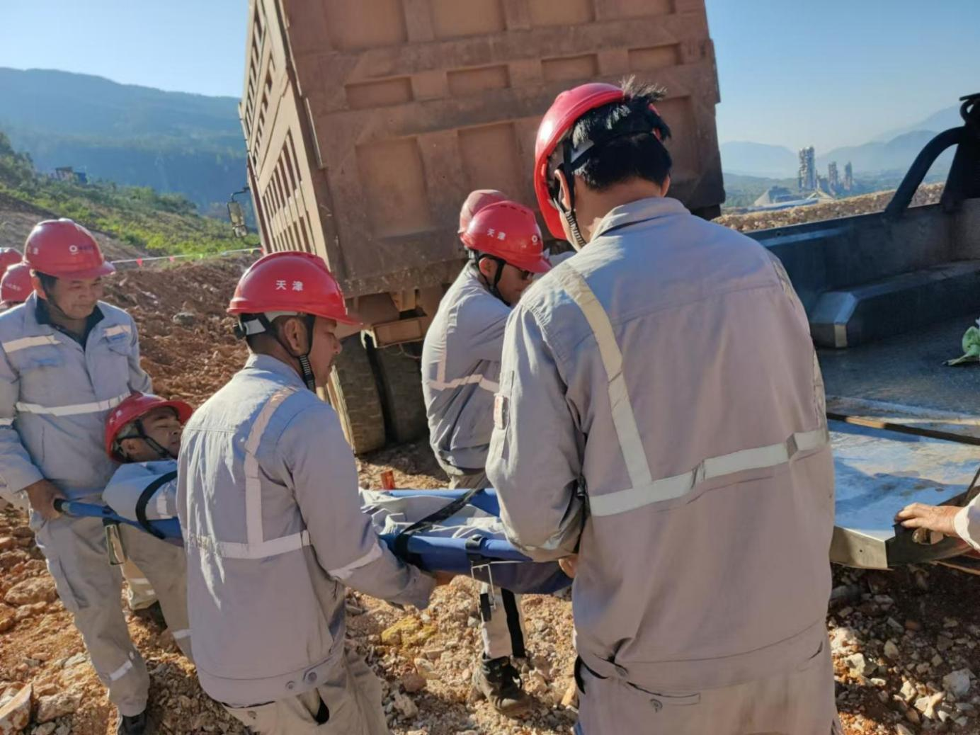 本次演練假設(shè)礦山運(yùn)輸車輛在裝卸作業(yè)時(shí),由于司機(jī)未能及時(shí)觀察周圍環(huán)境,車輛后退過程中撞倒一名作業(yè)人員,造成該員工腿部嚴(yán)重受傷,無法移動(dòng)。演練內(nèi)容模擬礦山車輛傷害事故的實(shí)際場(chǎng)景,保證演練的實(shí)用性和針對(duì)性。