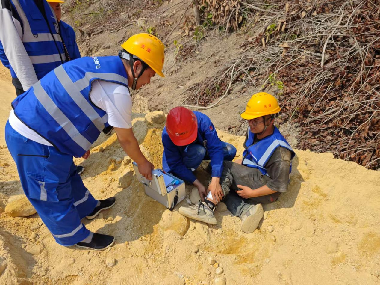 演練過(guò)程緊張有序。下午 3:20,現(xiàn)場(chǎng)安全檢查作業(yè)人員在巡查時(shí)發(fā)現(xiàn) k0 + 770m 填方區(qū)上方流水突然擴(kuò)大,平臺(tái)積水迅速上漲蔓延,有淹沒(méi)現(xiàn)場(chǎng)設(shè)備設(shè)施的危險(xiǎn),立即通過(guò)對(duì)講機(jī)通知現(xiàn)場(chǎng)人員和設(shè)備撤離。隨后,各應(yīng)急演練小組迅速響應(yīng),搶險(xiǎn)搶修組以搶救人員生命安全為首要任務(wù),組織設(shè)備撤離并制定安全措施;警戒疏散組布置安全警戒,實(shí)行交通管制,確保現(xiàn)場(chǎng)秩序;醫(yī)療救護(hù)組準(zhǔn)備就緒,隨時(shí)應(yīng)對(duì)可能的傷亡情況;物資供應(yīng)組保障應(yīng)急物資的供應(yīng);交通運(yùn)輸組提供交通車輛保障。