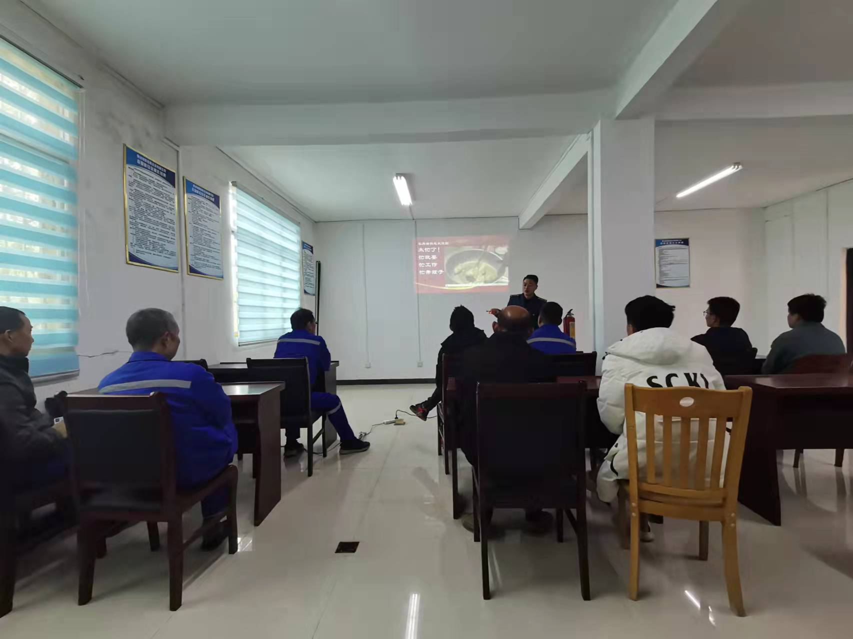 貴州省消防中心于2021年11月29日9:00-10:00來到我礦進行消防安全知識的宣傳演講,通過ppt和視頻的方式講解消防安全知識。